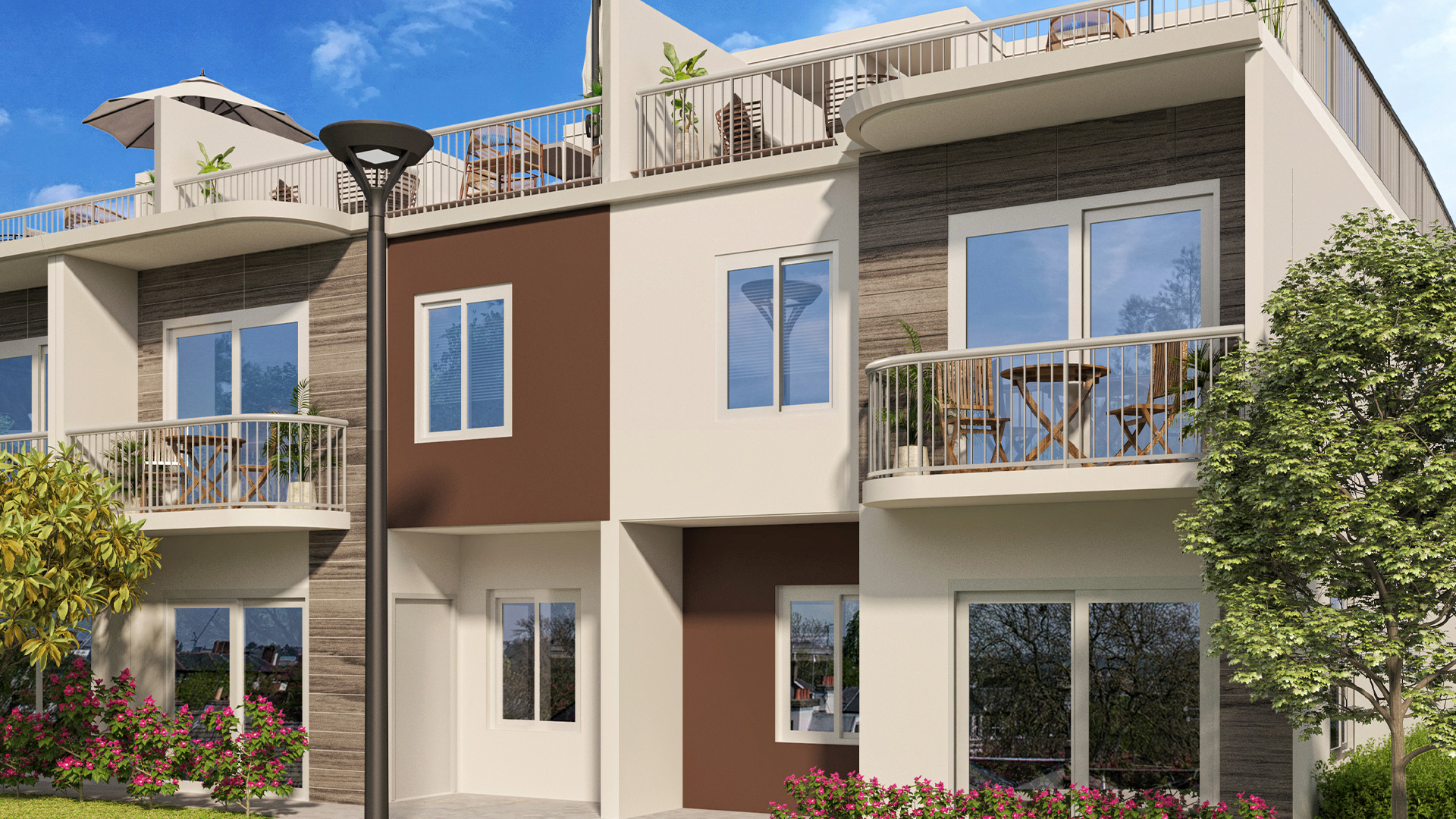 Grace Homes features four bedrooms, three baths, a powder room, and a distinctive rooftop terrace, ideal for family gatherings, entertaining, or quiet evenings under the Florida sky.