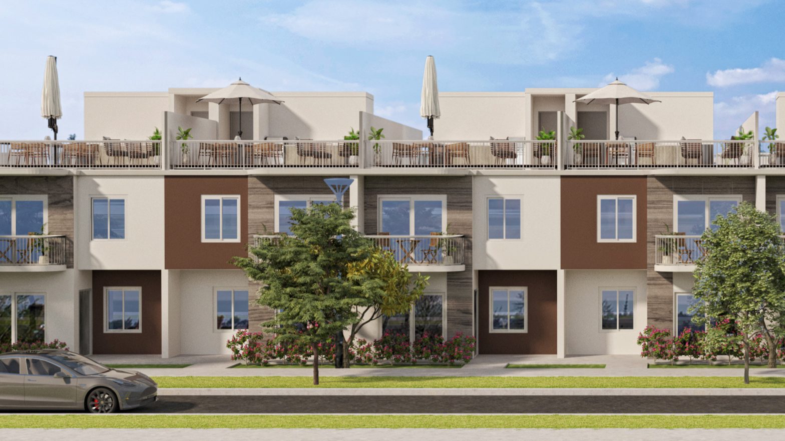 Grace Homes features four bedrooms, three baths, a powder room, and a distinctive rooftop terrace, ideal for family gatherings, entertaining, or quiet evenings under the Florida sky.